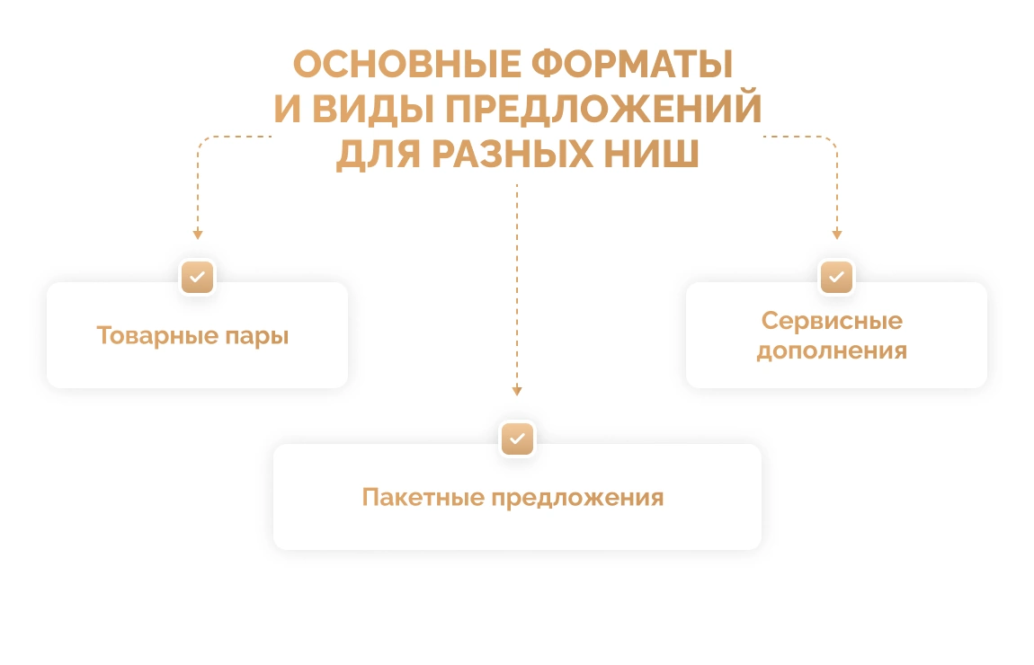 Существует несколько основных видов и форматов кросс-продаж, выбор которых зависит от специфики вашего продукта и канала коммуникации.